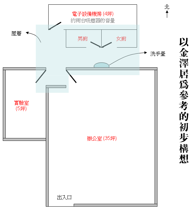 b. 設備機房 (4 坪,因為會吵,所以在草圖中放在最遠的地方)