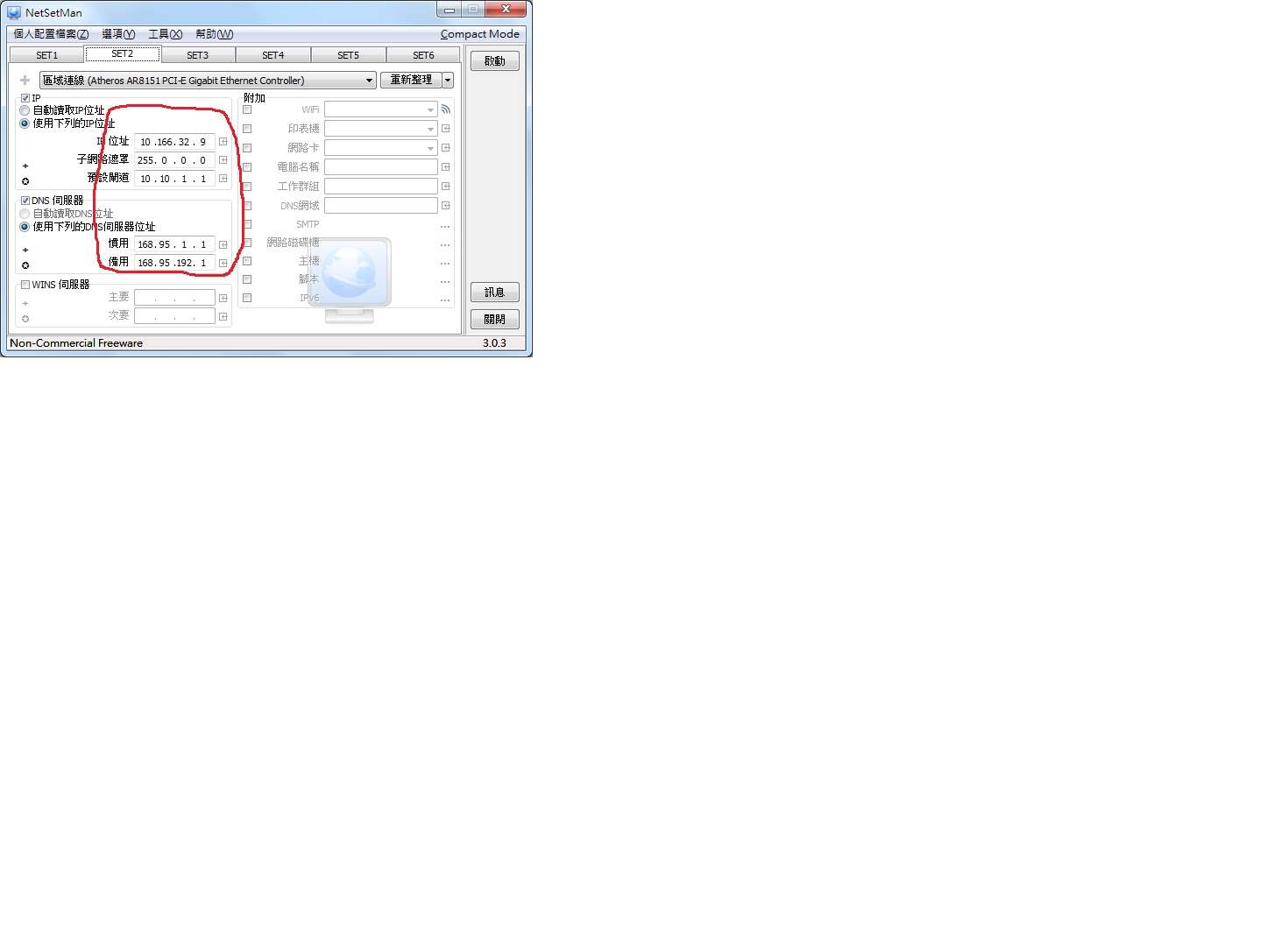 VM底下的linux您是設定成固定IP 10.166.32.9。