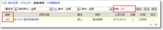 如果是要查詢院內的開課資料,建議可在有開放報名的資料 (最新課程) 中查詢